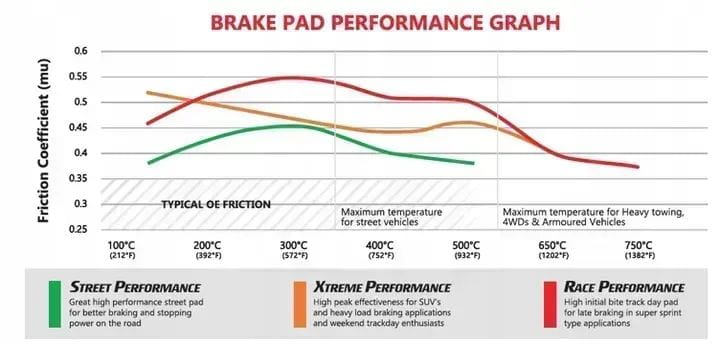 Klocki hamulcowe DBA Xtreme Performance zostały stworzone dla kierowców oczekujących doskonałej reakcji na nacisk hamulca (initial bite) i skuteczności od pierwszego hamowania do maksymalnej temperatury 550 ºC. Gama XP jest przeznaczona do pracy pod zwiększonym obciążeniem gdzie wymagany jest wysoki poziom współczynnika tarcia aby bezpiecznie hamować nawet w ekstremalnych warunkach.