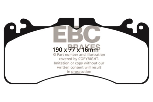 Klocki hamulcowe samochodowe YELLOWSTUFF zapewniają wysoką skuteczność hamulców zarówno przy niskiej jak i wysokich temperaturach występujących podczas wielokrotnych gwałtownych hamowań z wysokich prędkości na przykład podczas szybkiej jazdy autostradowej lub po torze wyścigowym podczas tzw. Track Days. EBC Yellowstuff są to klocki hamulcowe, których materiał cierny wykonany jest na bazie włókien aramidowych. Nie wymagają rozgrzania, a wysoka temperatura ostrej jazdy tylko wzmaga ich skuteczność.