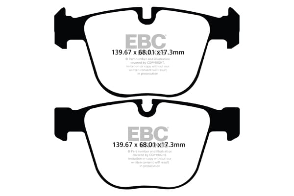 Klocki hamulcowe samochodowe YELLOWSTUFF zapewniają wysoką skuteczność hamulców zarówno przy niskiej jak i wysokich temperaturach występujących podczas wielokrotnych gwałtownych hamowań z wysokich prędkości na przykład podczas szybkiej jazdy autostradowej lub po torze wyścigowym podczas tzw. Track Days. EBC Yellowstuff są to klocki hamulcowe, których materiał cierny wykonany jest na bazie włókien aramidowych. Nie wymagają rozgrzania, a wysoka temperatura ostrej jazdy tylko wzmaga ich skuteczność.