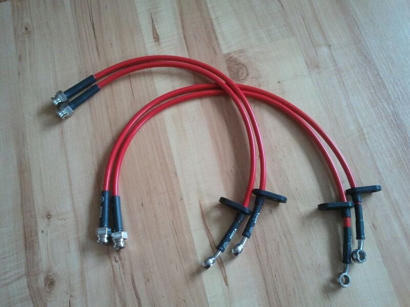 Zestaw przewodów hamulcowych w stalowym oplocie jest wyprodukowany specjalnie dla Ciebie przy użyciu najwyższej jakości końcówek ze stali nierdzewnej zaciśniętych bezpośrednio na nierozciągliwym teflonowym przewodzie w gęstym stalowym oplocie.