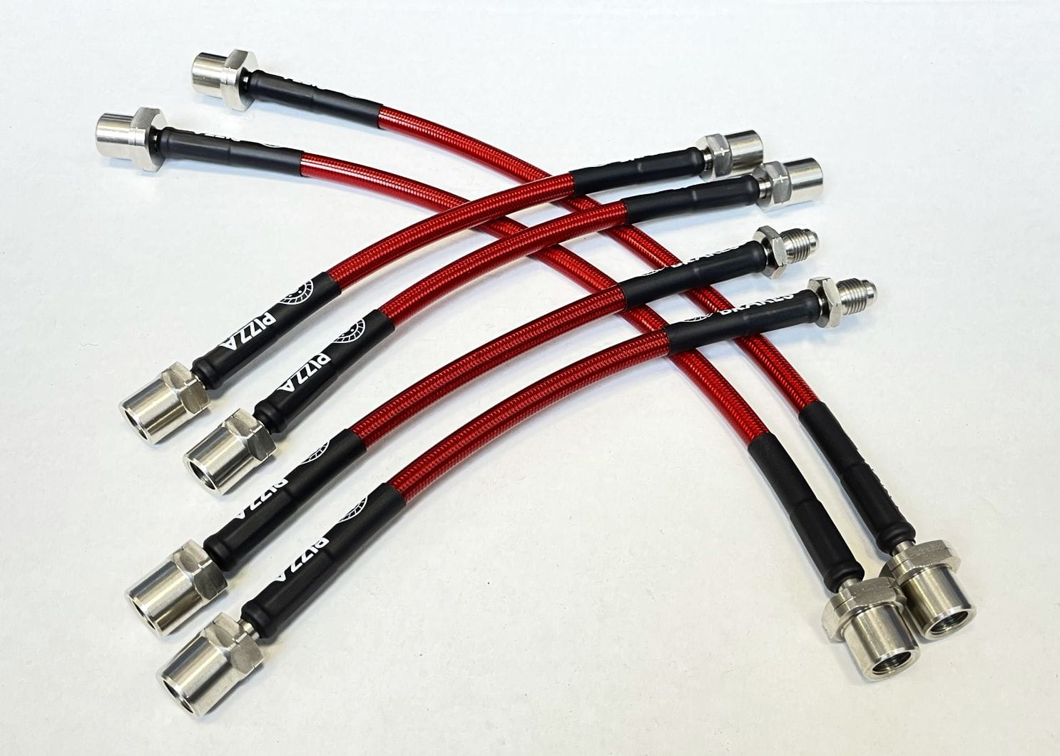 Zestaw przewodów hamulcowych w stalowym oplocie jest wyprodukowany specjalnie dla Ciebie przy użyciu najwyższej jakości końcówek ze stali nierdzewnej zaciśniętych bezpośrednio na nierozciągliwym teflonowym przewodzie w gęstym stalowym oplocie.