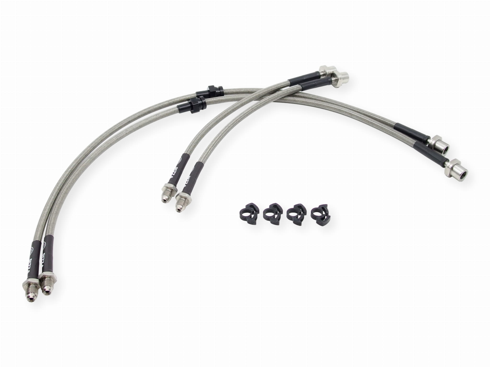 Zestaw przewodów hamulcowych w stalowym oplocie jest wyprodukowany specjalnie dla Ciebie przy użyciu najwyższej jakości końcówek ze stali nierdzewnej zaciśniętych bezpośrednio na nierozciągliwym teflonowym przewodzie w gęstym stalowym oplocie.