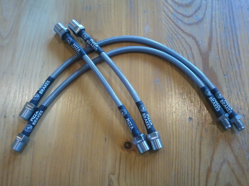 Zestaw przewodów hamulcowych w stalowym oplocie jest wyprodukowany specjalnie dla Ciebie przy użyciu najwyższej jakości końcówek ze stali nierdzewnej zaciśniętych bezpośrednio na nierozciągliwym teflonowym przewodzie w gęstym stalowym oplocie.