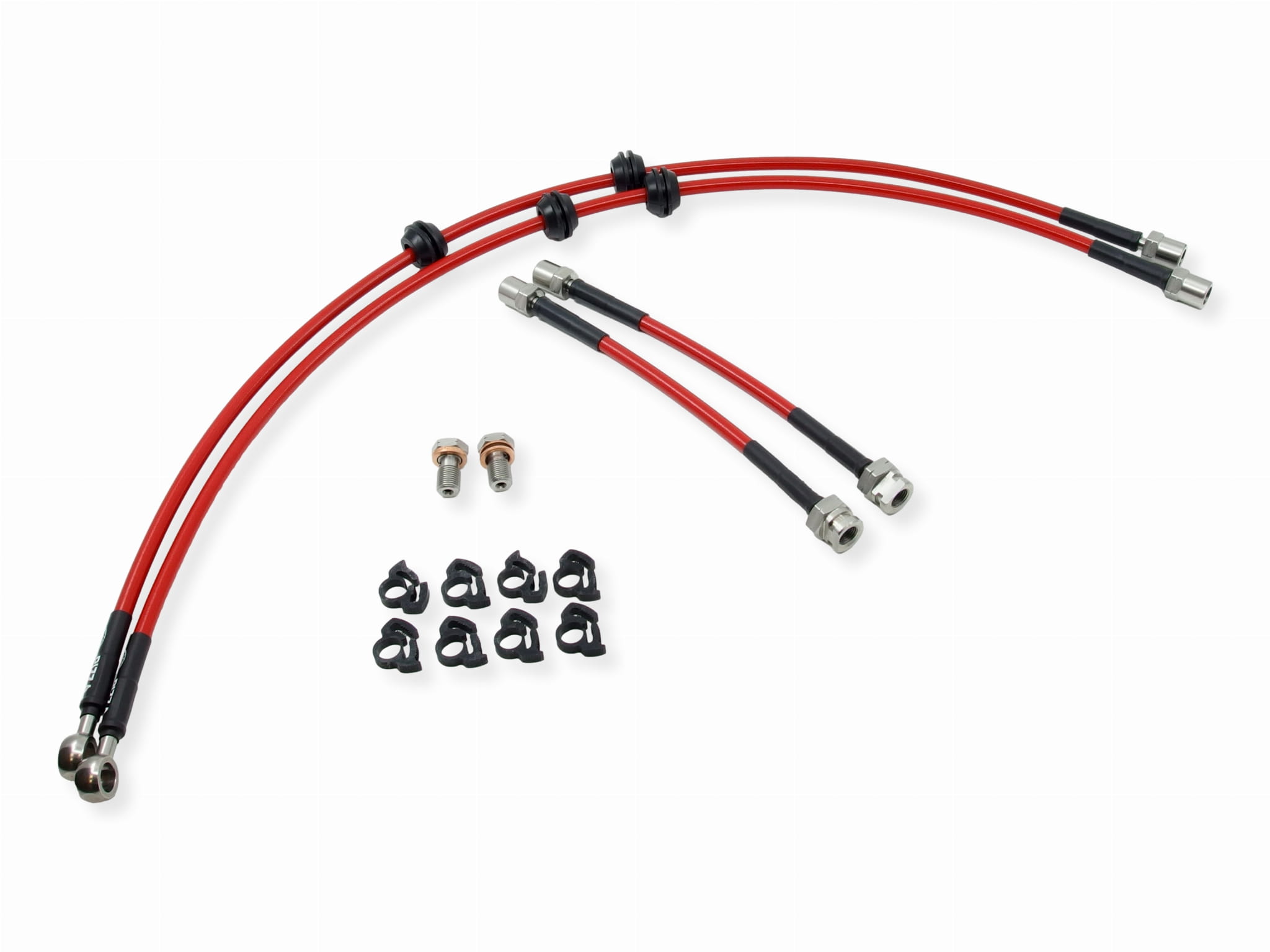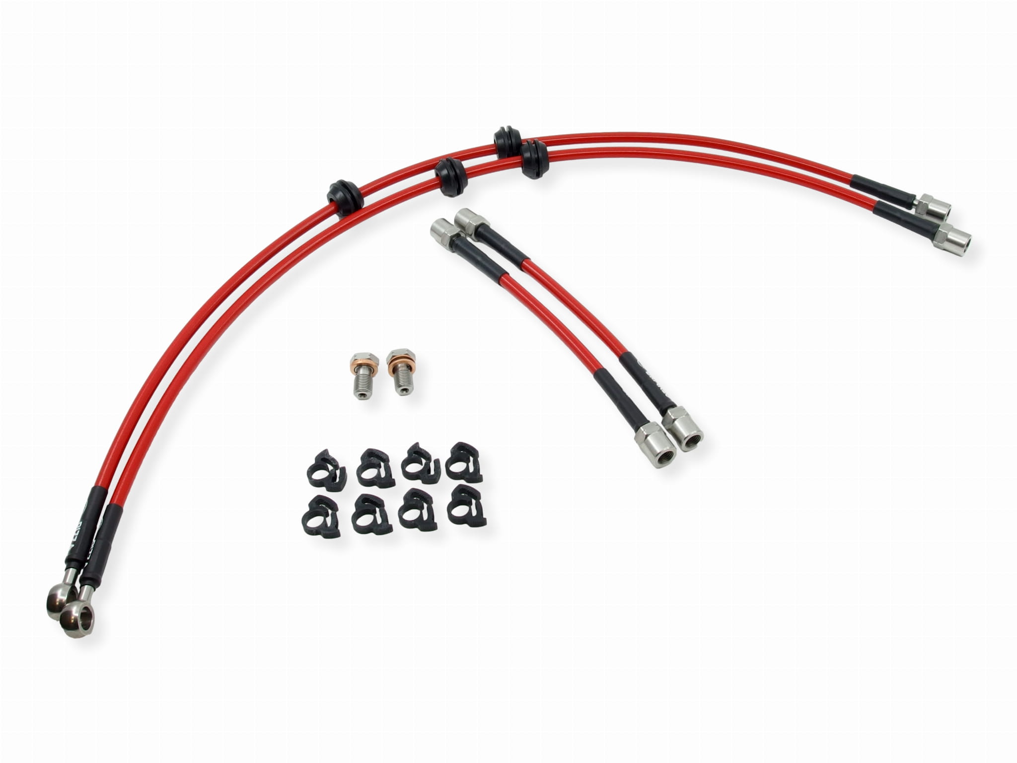 Zestaw przewodów hamulcowych w stalowym oplocie jest wyprodukowany specjalnie dla Ciebie przy użyciu najwyższej jakości końcówek ze stali nierdzewnej zaciśniętych bezpośrednio na nierozciągliwym teflonowym przewodzie w gęstym stalowym oplocie.