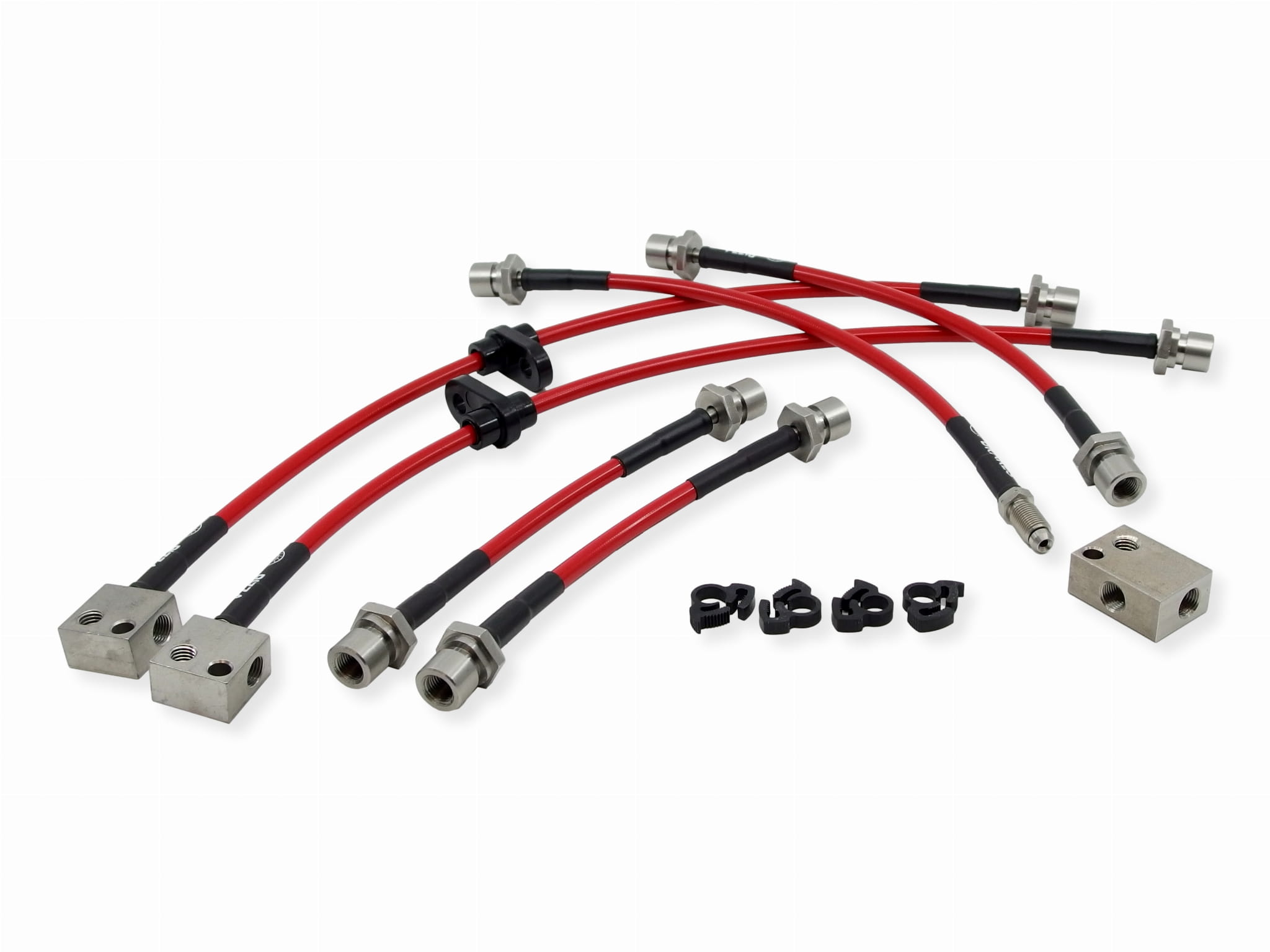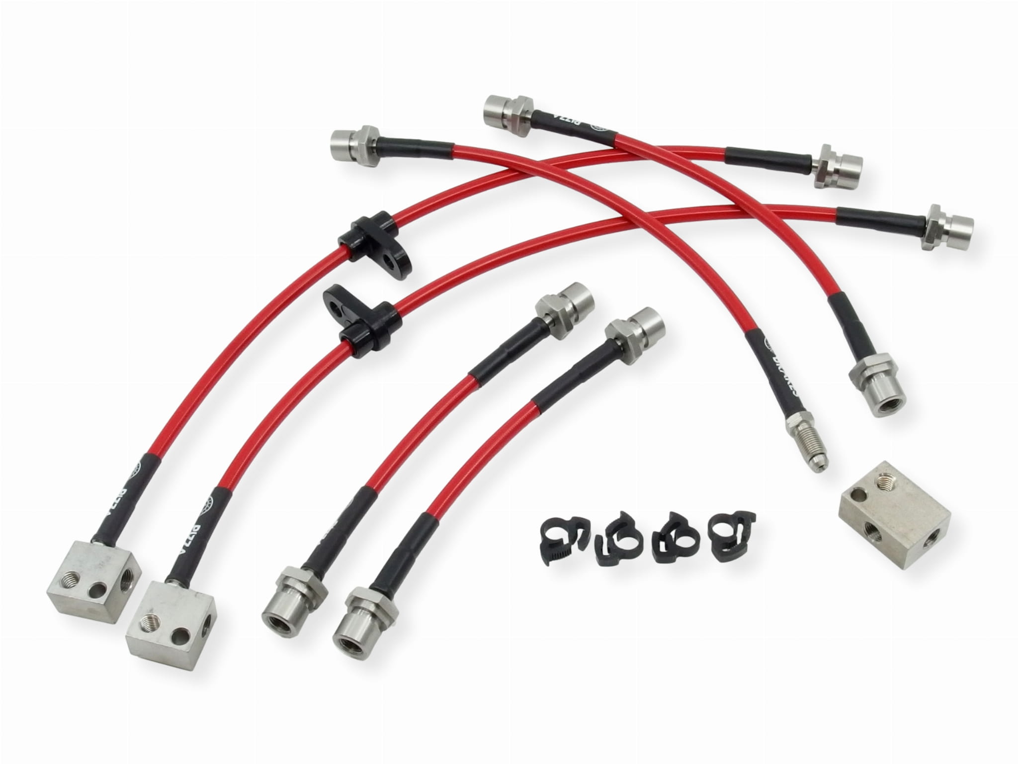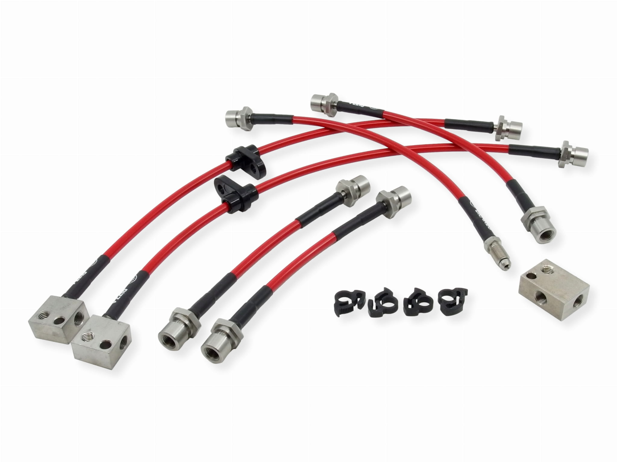 Zestaw przewodów hamulcowych w stalowym oplocie jest wyprodukowany specjalnie dla Ciebie przy użyciu najwyższej jakości końcówek ze stali nierdzewnej zaciśniętych bezpośrednio na nierozciągliwym teflonowym przewodzie w gęstym stalowym oplocie.