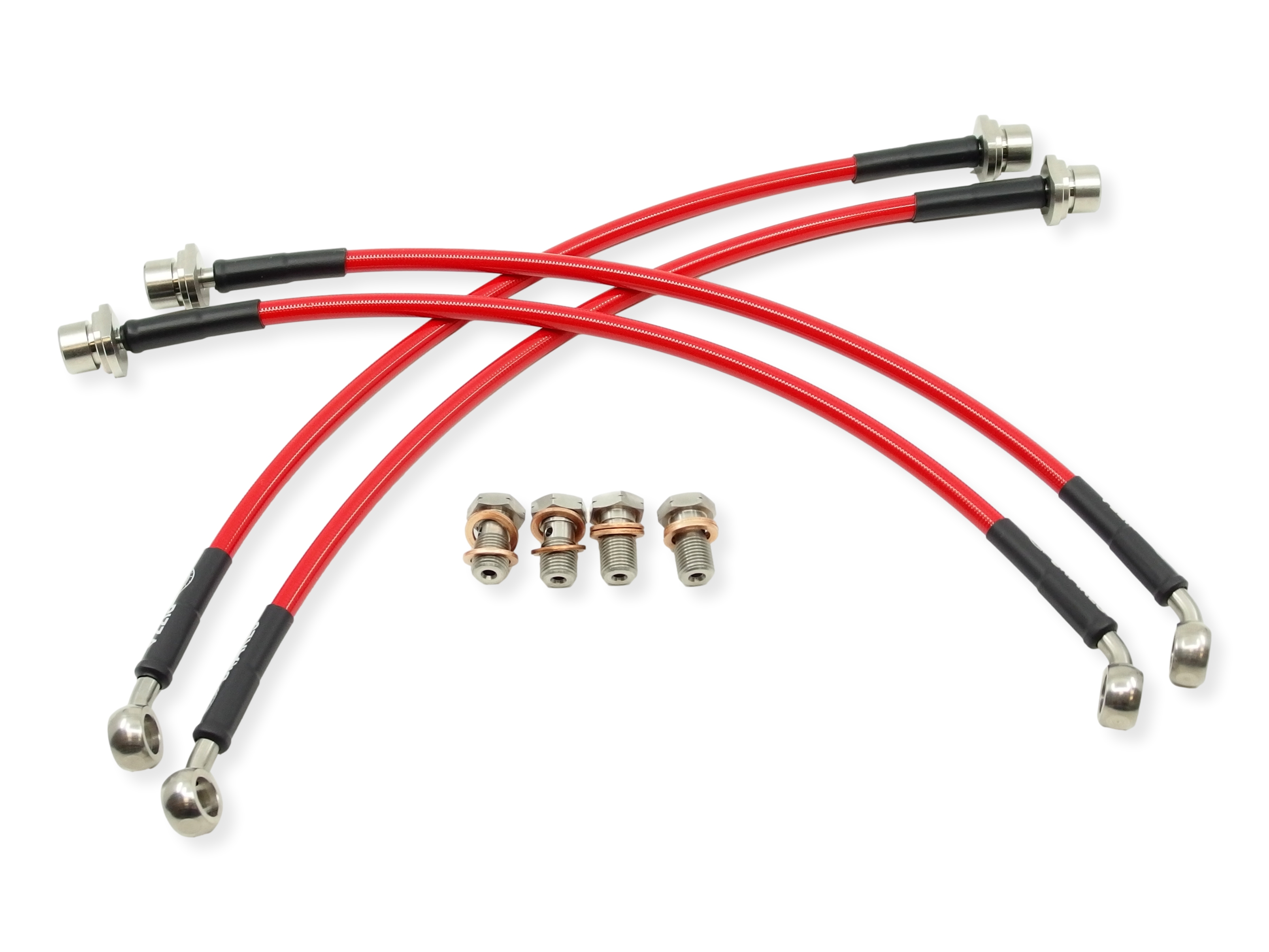 Zestaw przewodów hamulcowych w stalowym oplocie jest wyprodukowany specjalnie dla Ciebie przy użyciu najwyższej jakości końcówek ze stali nierdzewnej zaciśniętych bezpośrednio na nierozciągliwym teflonowym przewodzie w gęstym stalowym oplocie.