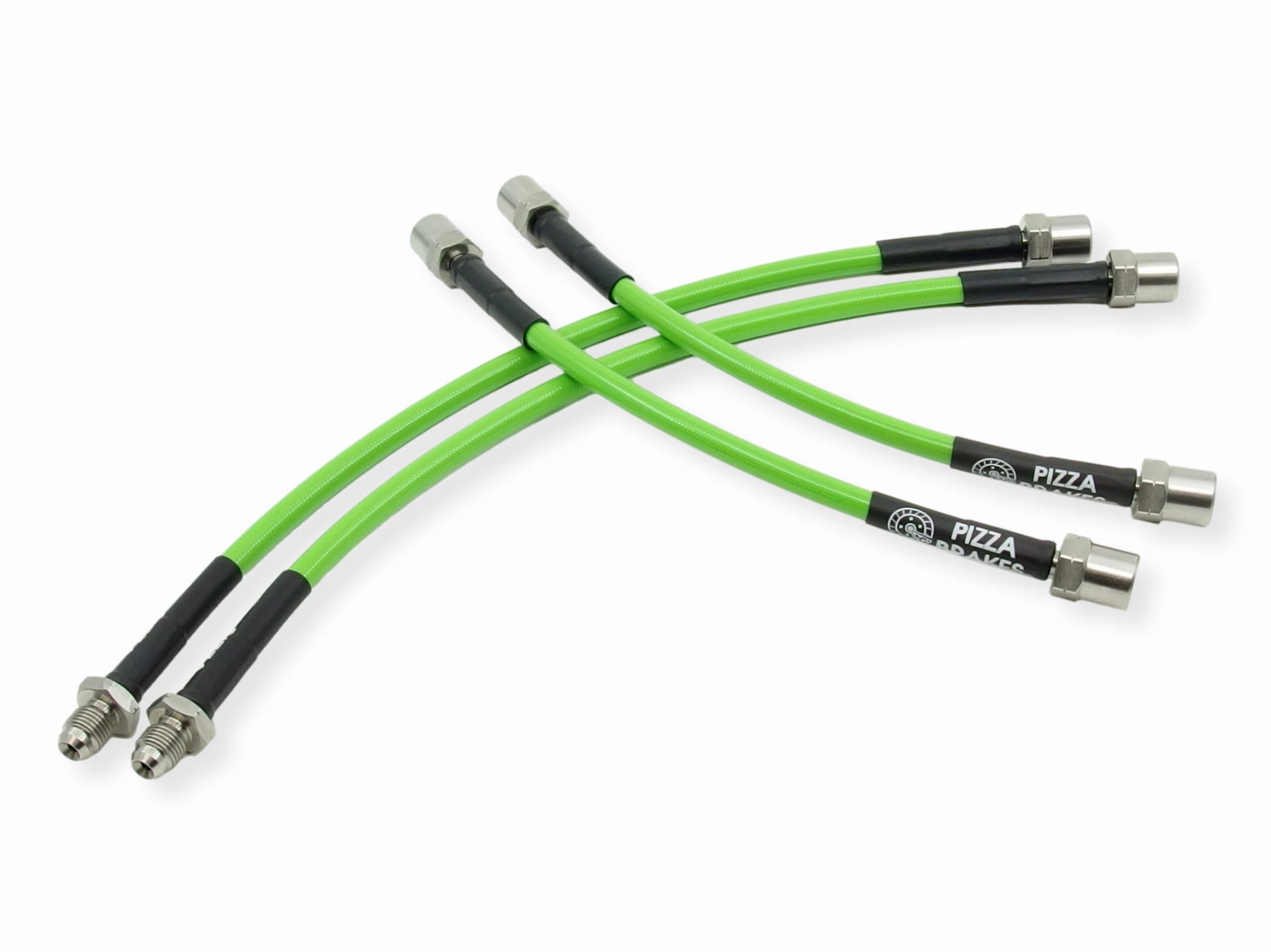 Zestaw przewodów hamulcowych w stalowym oplocie jest wyprodukowany specjalnie dla Ciebie przy użyciu najwyższej jakości końcówek ze stali nierdzewnej zaciśniętych bezpośrednio na nierozciągliwym teflonowym przewodzie w gęstym stalowym oplocie.
